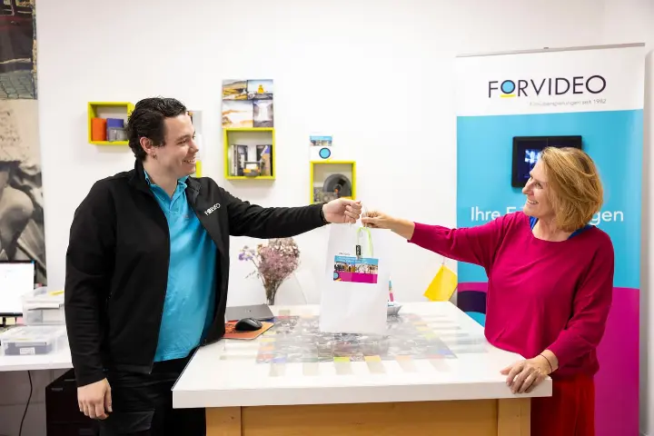 Nach dem letzten Feinschliff und der gewünschten Aufbereitung folgt der vielleicht schönste Moment des gesamten Prozesses: Die Übergabe Ihrer digitalisierten Erinnerungen. Ihre Originalmedien – ob Dias, Super 8-Filme, VHS-Kassetten oder Negative – erhalten Sie selbstverständlich unversehrt und sorgfältig verpackt zurück. Ergänzt werden sie durch die frisch digitalisierten Daten auf USB-Stick oder als sicherer Cloud-Link in unserer FORVIDEO Online Mediathek. Diese können Sie bequem mit Ihren Liebsten gleich online teilen.